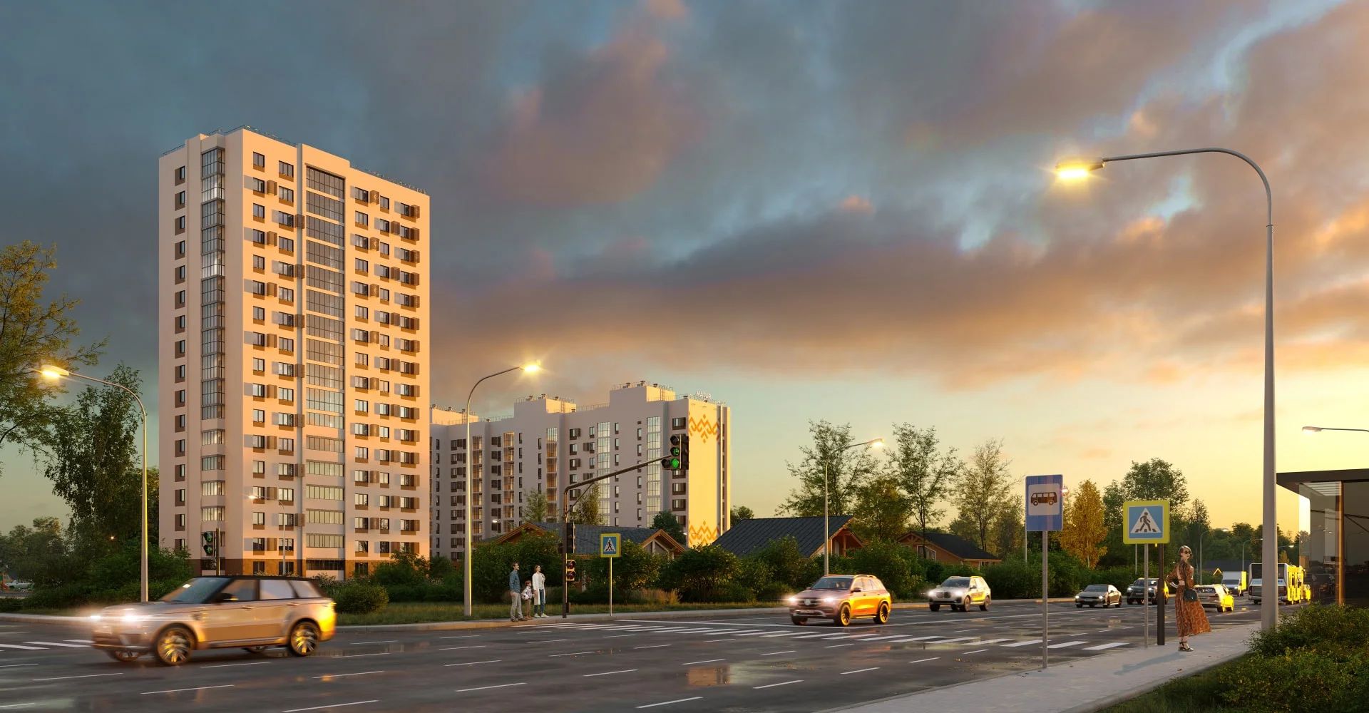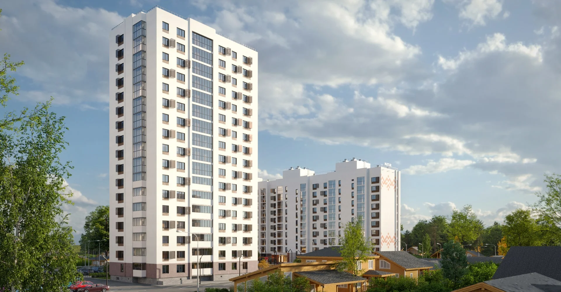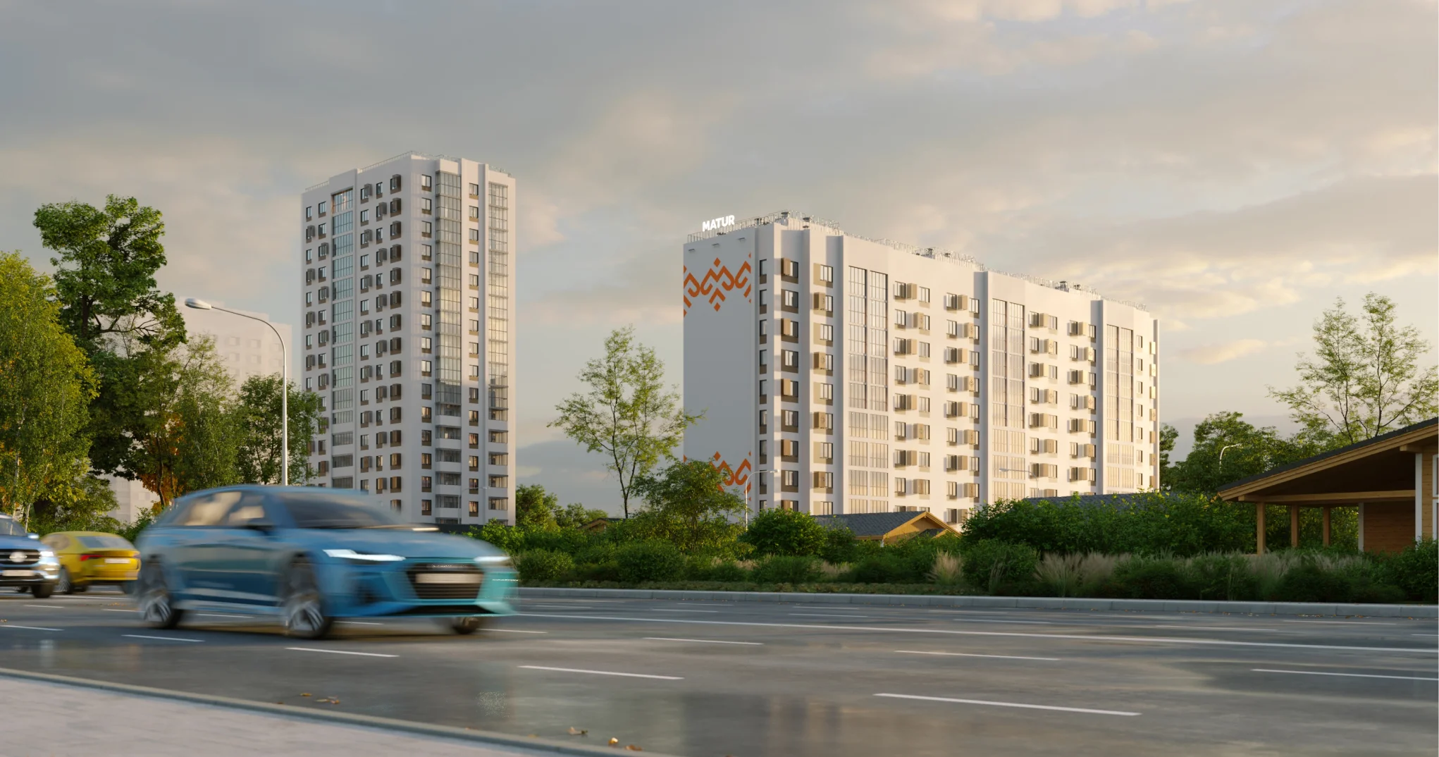 Играющий всеми оттенками вечерней зари, поблескивая полотнами окон, ЖК Matur ничего не доказывает — он просто есть, он, просто красив, комфортен, удачно вписан в окружение. Он продукт — того самого развития, которым отличается район Затона, он — знак ударения, намек на продуманные технические решения и развитую инфраструктуру.